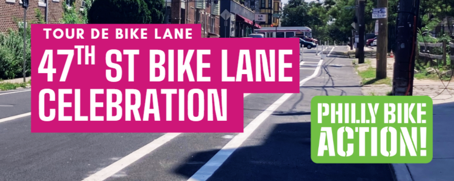 Join us to celebrate the new 47th Street Bike Lane in West Philly with a bike ride tour around the neighborhood. We will be joined by council member Jamie Gauthier and start/end at Clark Park. We plan to meet at 9am, and roll at 9:20am.