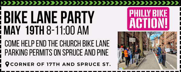 We are back to party in May! Come make some new friends and advocate for safer bike lane as we work to end the congregational bike lane parking permits. Stay tuned for this months party themes.